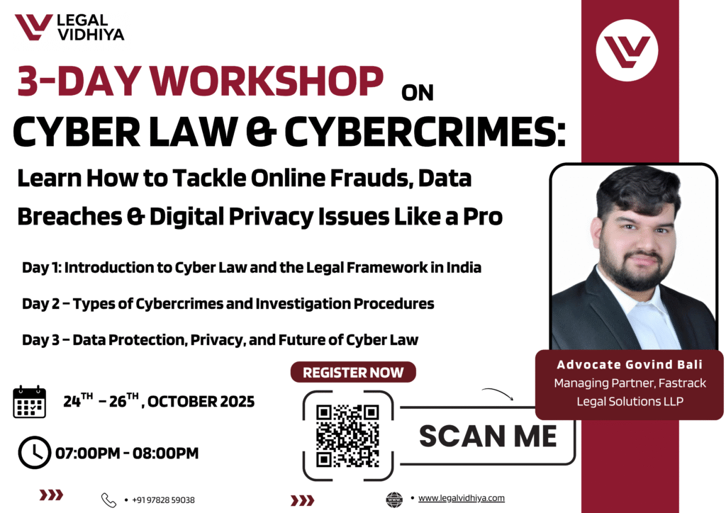 Legal Vidhiya proudly presents a specialized 3-day workshop on Cyber Law and Cyber Crimes, curated for law students, legal interns, and professionals eager to understand the rapidly evolving legal dimensions of the digital world.