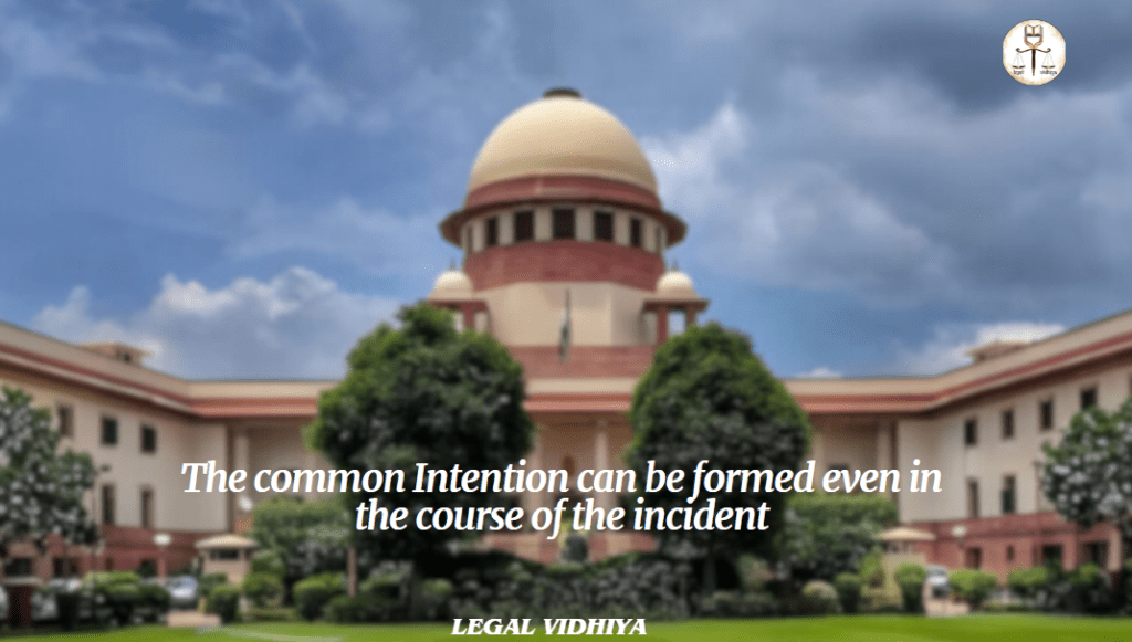 The Court rejected the argument that there was no evidence to prove the appellant’s common intention in a case. They ruled that because the accused individuals arrived together and collectively inflicted fatal injuries on the victim using their weapons, their joint actions demonstrated a shared intent, making them all accountable under Section 34 of the Indian Penal Code for the death of the deceased.