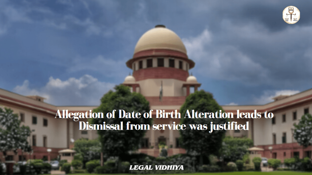 Supreme Court set aside judgement of the D.B. special appeal (writ) no.484/2011 of trial court. Which convicted the appellant for alteration in Date of Birth in 8th standard marksheet to attain majority for recruitment for the post of constable under section 420 of  IPC and sentenced him for imprisonment of three years along with the fine of Rs.5,000/-. However the the additional district and session judge, Jodhpur, vide judgement dated 24.08.2007 , allowed the criminal appeal and acquitted the appellant. Later that the appellant’s writ petition was also dismissed by the single judge stating that the standard proof in a criminal and departmental proceeding is different. Being aggrieved the appellant appeal before the honorable Supreme Court stating that wether the dismissal from service is justified on the name of departmental enquiry. The writ power of the court to review the Disciplinary action of the Authority is very limited. The scope of enquiry is to wether the decision is legitimate. As the part of the review court exercising the review power wether the disciplinary authority has ignored the evidences and if find the court is not powerless to interfere. In case of acquittal by criminal court not allow the employee to claim benefit, including return to former position. It is important to note that the appellate court on acquittal of the appellant has clearly noticed the document present Exh. P-3- original marksheet of 8th standard, the date of  Birth clearly shown was 21.04.1974 and the accused was entitled to get benefit. So, the appellate court clearly shows that the charge against the appellant was not just and not proved. So the court stated that appellant shall be reinstated with all consequential benefit including seniority, notional promotions, fitment of salary and all other benefits. As the backwages are concerned the court award him 50% of the backwages.