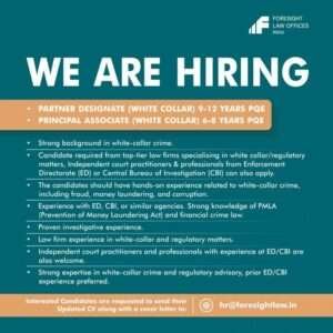 Job Opportunity: Principal Associate / Partner Designate at Foresight Law Offices India (New Delhi) Legal Vidhiya brings to you an ...