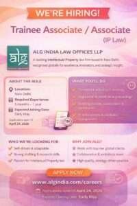 Job Opportunity: Trainee Associate / Associate (IP Law) at ALG India Law Offices LLP (New Delhi) Legal Vidhiya brings to ...