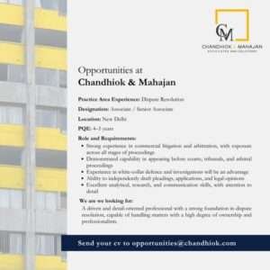 Job Opportunity: Associate / Senior Associate at Chandhiok & Mahajan, Advocates and Solicitors (New Delhi)