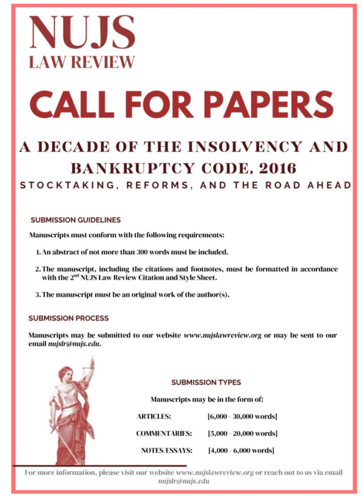 Call for Papers by NUJS Law Review | Special Issue on A Decade of the Insolvency and Bankruptcy Code, 2016
