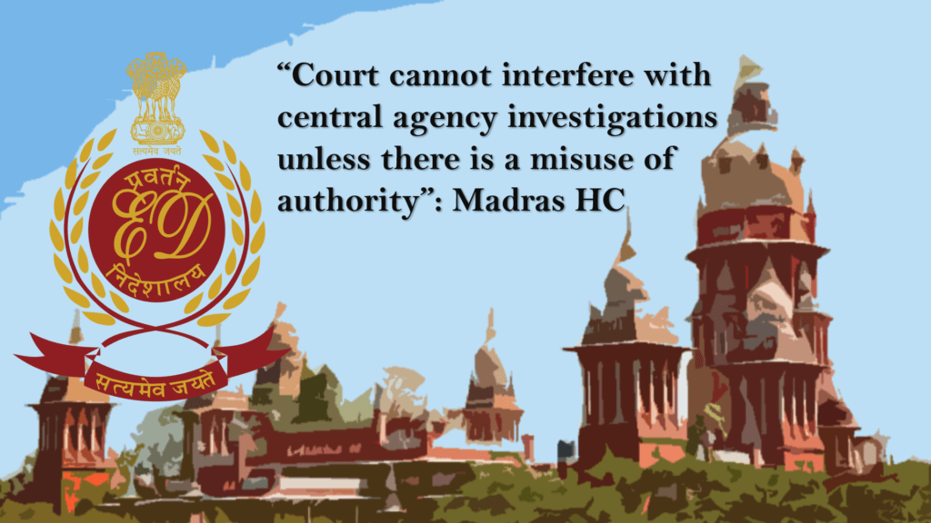 In a recent ruling, the Madras High Court refused to intervene in proceedings filed by the Enforcement Directorate (ED) against a private company, stating that courts must not function as roadblocks to ongoing inquiries by investigative agencies.