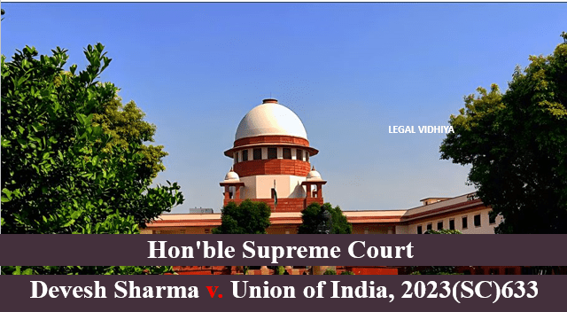 A judgment dated 25th November 2021, of the division bench of the Rajasthan High Court was challenged before this court. There were three more Writ Petitions on a similar matter before the court, rather than this appeal. While pursuing these cases, for facts, we would refer to a Civil Appeal arising out of a special leave petition (C) No. 20743 of 2021 Devesh Sharma v. Union of India which become apparent out of the order dated 25, November 2021 and was passed by the High Court in Division Bench Civil Writ Petition No.2109 of 2021.