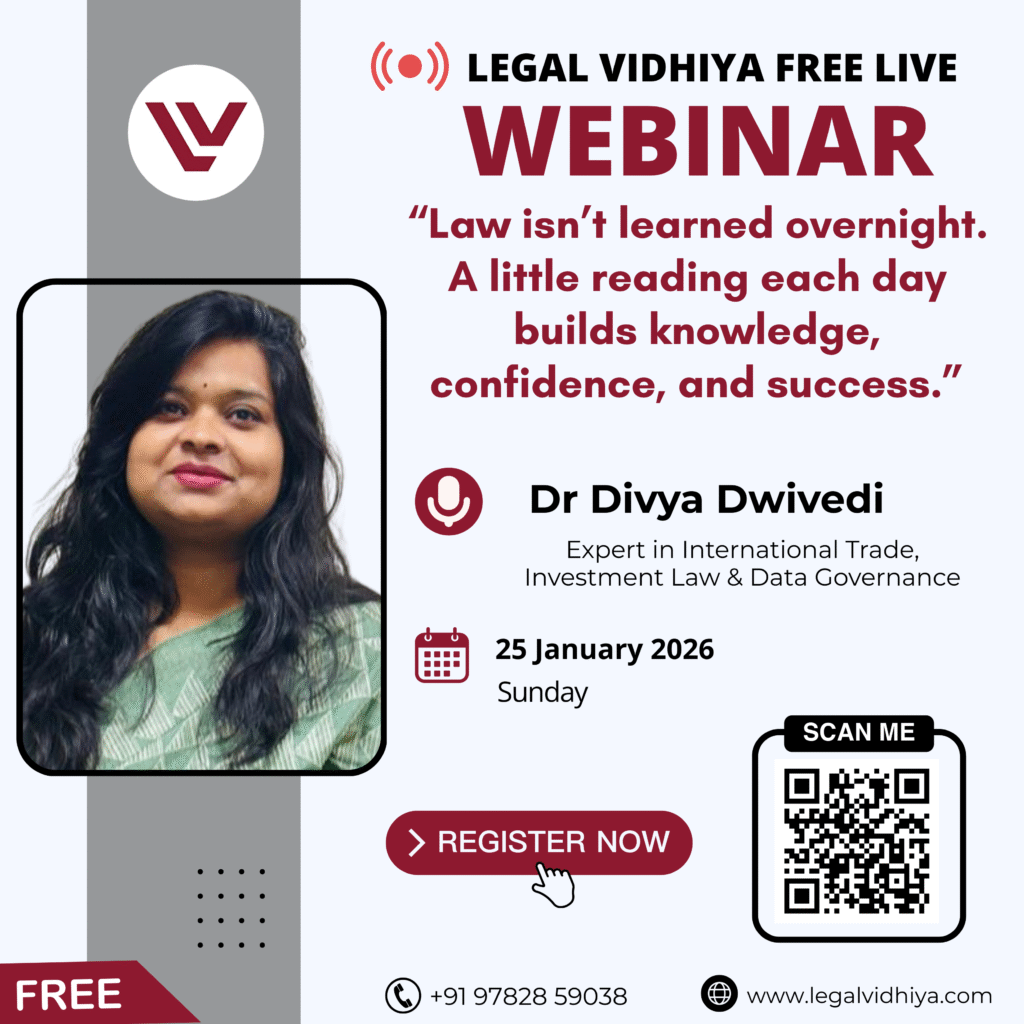 Join us for a FREE LIVE WEBINAR titled “LAW ISN’T LEARNED OVERNIGHT. A LITTLE READING EACH DAY BUILDS KNOWLEDGE, CONFIDENCE, AND SUCCESS.” on 25 January 2026 at 05:00 PM IST, hosted by Legal Vidhiya. This session is designed for law students, young professionals, and aspiring legal experts who want to understand how consistent reading and study habits can lead to long-term success in the legal field.