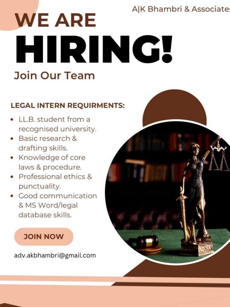 A.K. Bhambri & Associates is inviting applications from law students interested in gaining practical exposure in litigation practice. This internship provides an opportunity to work on real legal matters, enhance drafting and research skills, and understand court procedures.