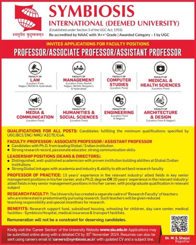 Job Opportunity: Faculty Positions at Symbiosis International (Deemed University)