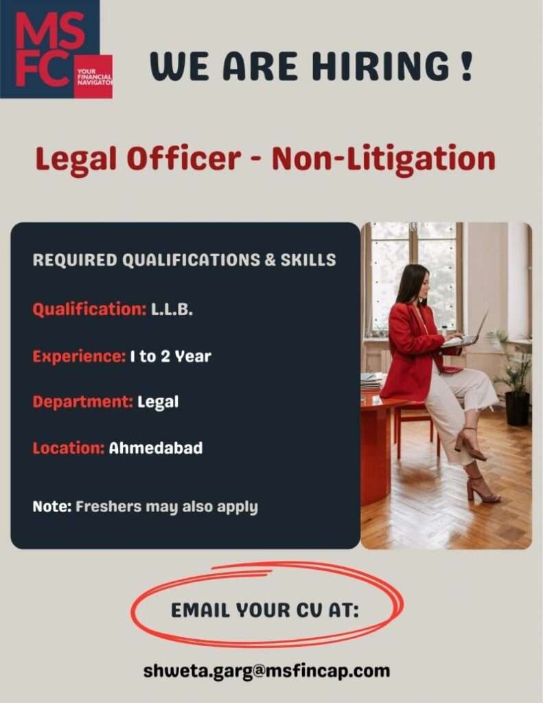 Job Opportunity: Legal Officer – Non Litigation (NBFC) at MS Fincap (Ahmedabad)