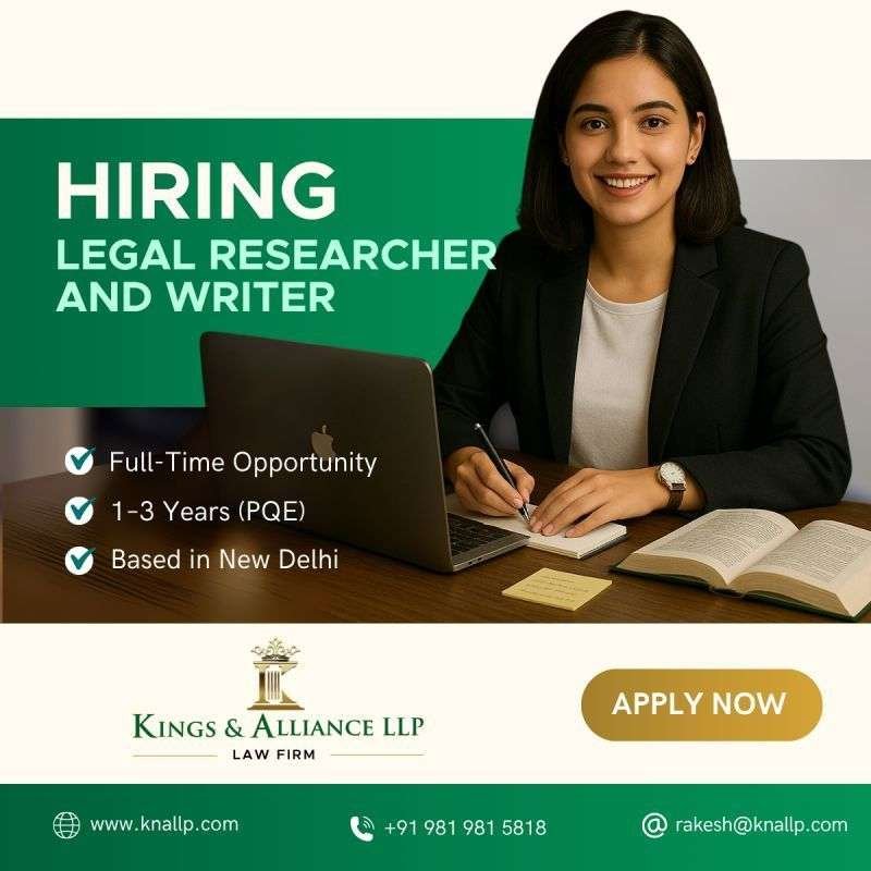 Job Opportunity: Legal Researcher & Writer at Kings & Alliance LLP (New Delhi)