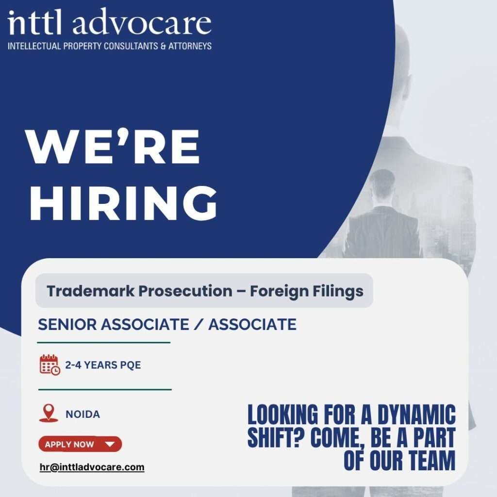 Inttladvocare is inviting applications from professionals with experience in international trademark prosecution. This role offers exposure to cross-border filings, multi-jurisdictional coordination, and global IP portfolio management, making it ideal for candidates interested in trademark law and international practice.