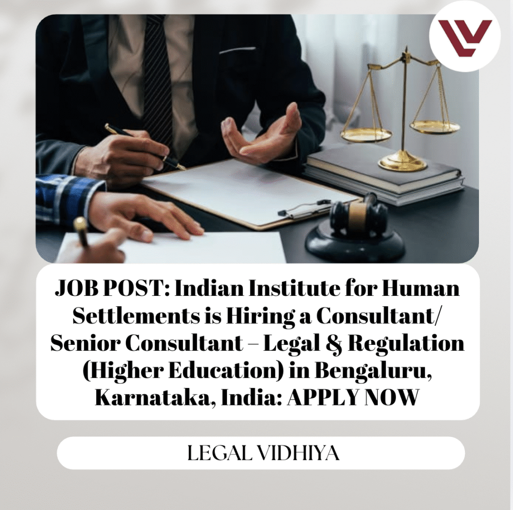 As part of IIHS’ detailed legal work, we are looking for a candidate to fill the full-time position of Consultant/ Sr. Consultant – Legal & Regulation (Higher Education) in our Bengaluru office. This is a mid-level leadership position that will potentially involve independent responsibility and individual contribution along with reviewing and supervising the work of younger team members.