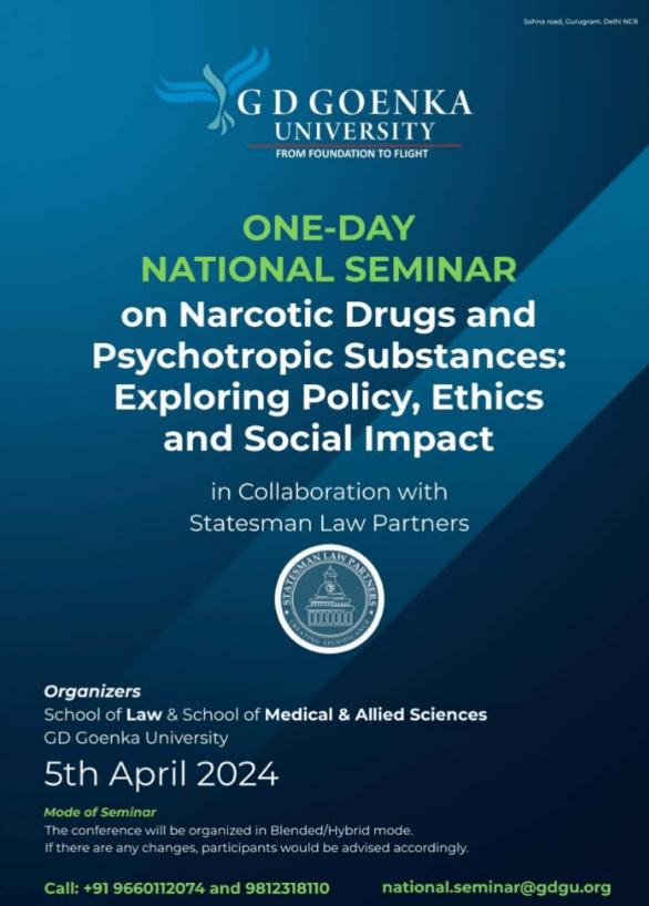 Main Theme – “Narcotic Drugs and Psychotropic Substances: Exploring Policy, Ethics and Social Impact”.
