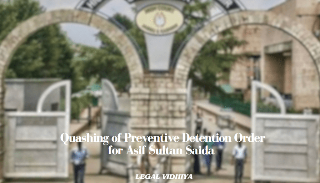 The given text appears to be a summary or excerpt from a legal document related to a writ petition challenging a preventive detention order issued against an individual named Asif Sultan Saida in Srinagar. The petitioner seeks to quash the detention order and secure the release of Asif Sultan Saida, alleging that the grounds for detention are vague and that essential procedural safeguards were not followed.