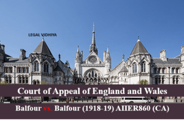 Citation 2.K.B. 571 (Court of Appeal 1919) Date of Judgement 25th June 1919 Court Court of Appeal of England and Wales Case Type Maintenance Plaintiff Mrs. Balfour (Wife) Defendant Mr. Balfour (Husband) Bench Warrington LJ , Duke LJ , Atkin LJ BRIEF FACT SUMMARY A husband promised to pay his Read more